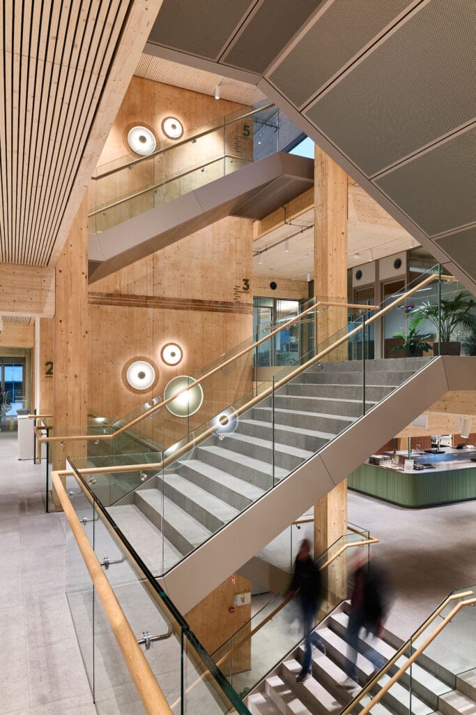 Het FundisHuis behoort tot de meest duurzame kantoorpanden van Nederland. Het nieuwe onderkomen van het zorg- en welzijnsnetwerk Fundis is vrijwel volledig in hout opgetrokken: geen systeemplafonds, geen weggewerkte liggers, maar open draagstructuren waar je tegenaan kijkt.