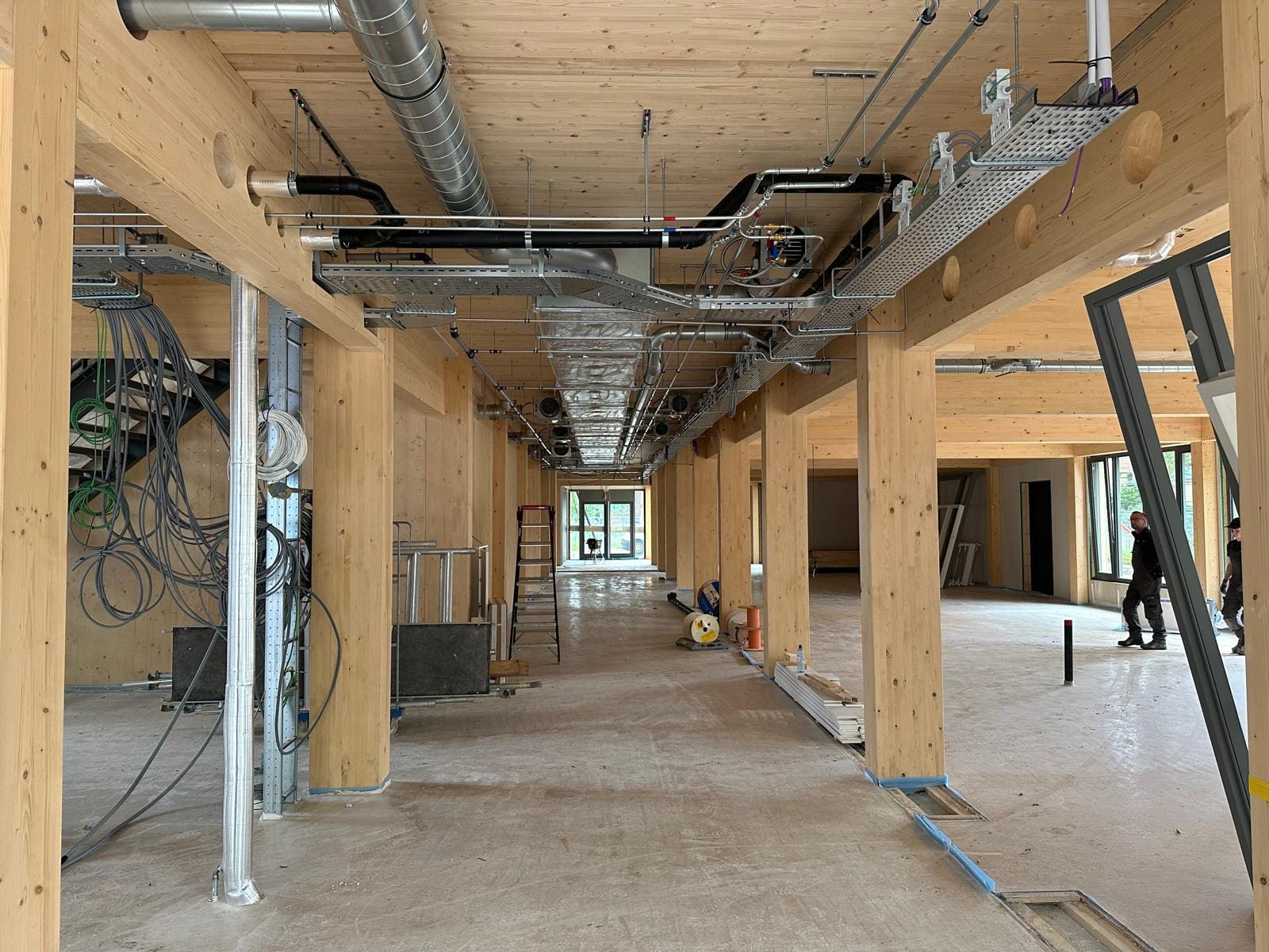 Belangrijke uitgangspunten waren een energiezuinig gebouw, toekomstbestendig binnenklimaat en een installatie die voor leerkrachten intuïtief te bedienen is. Een van de grootste projectuitdagingen lag in de afstemming tussen de houtbouwconstructie en de technische installaties. Als pilotproject binnen het Circlewood-concept was het essentieel om nieuwe detailleringen, montageprincipes en integratietechnieken te ontwikkelen. Door intensieve samenwerking en een goed doordacht installatieontwerp zijn de elektrotechnische en werktuigbouwkundige installaties succesvol geïntegreerd in het circulaire bouwsysteem.